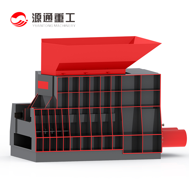 ?廢料是從頂部加入,由預壓缸壓縮廢料后自動滑落并被剪切缸